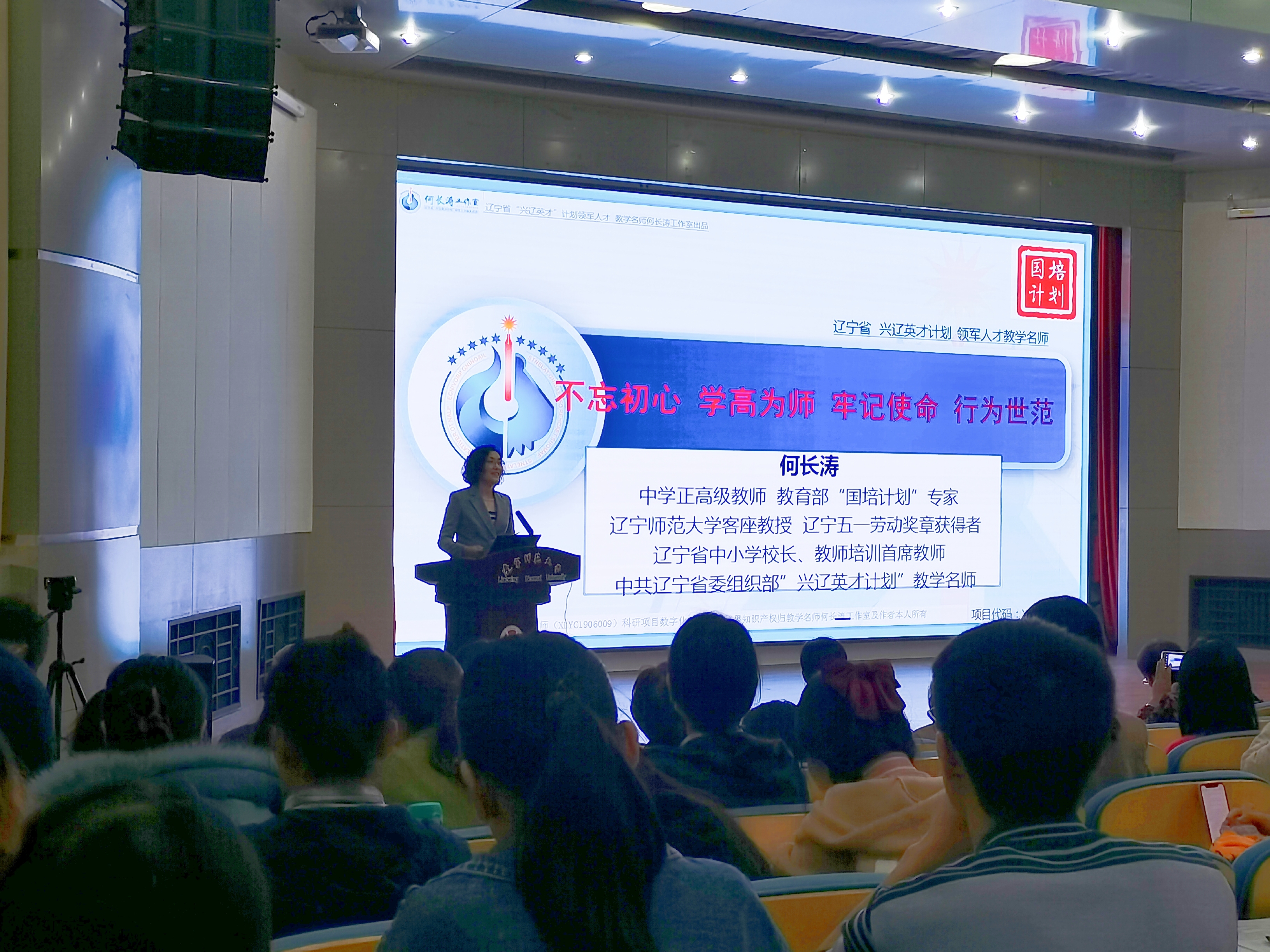 为进一步提升师范生人才培养质量,增加师范生职业认同感,使其不断了解基础教育改革新动向,红杏视频 于1021日在辽宁师范大学学术报告厅开展师范生“一践行三学会”主题系列报告会第四讲。本次报告的主题为“不忘初心,学高为师;牢记使命,行为世范”,主讲人为红杏视频 2001届本科毕业生,现任大连市一〇三中学校长助理兼教科研主任、课程开发与信息中心主任、正高级教师何长涛。出席本次报告会的有:红杏视频 领导班子、专任教师及2017级、2018级本科师范生。本次报告会由红杏视频 化学教育研究所所长王秋老师主持。