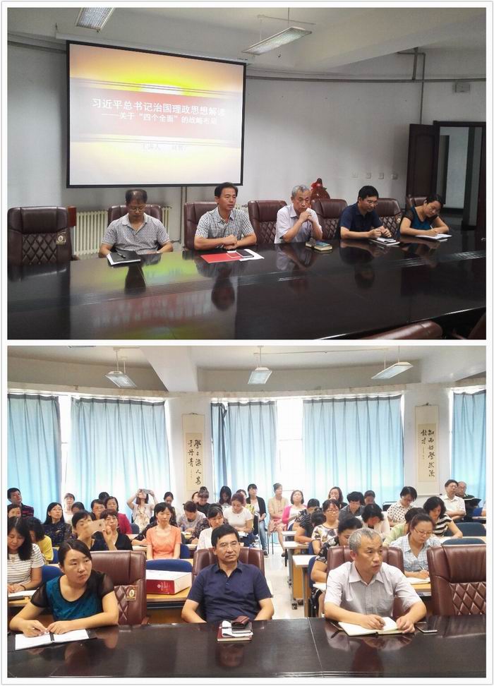 全体教工在四楼会议室认真聆听了题为《习近平总书记治国理政思想解读——关于“四个全面”的战略布局》的讲座,主讲人为红杏视频