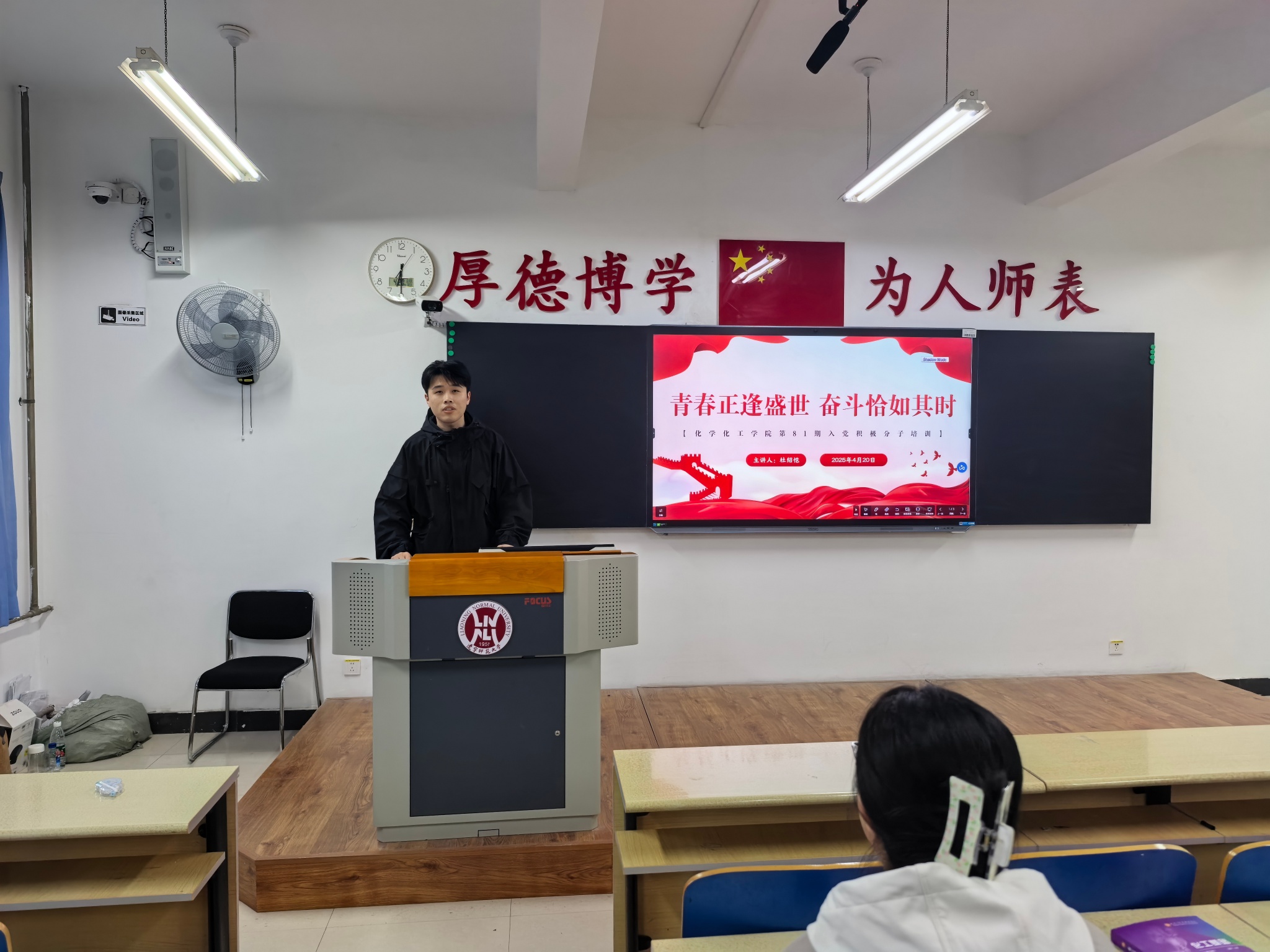 学生兼职辅导员杜绍恺主讲,主题为“青春正逢盛世,奋斗恰如其时”。