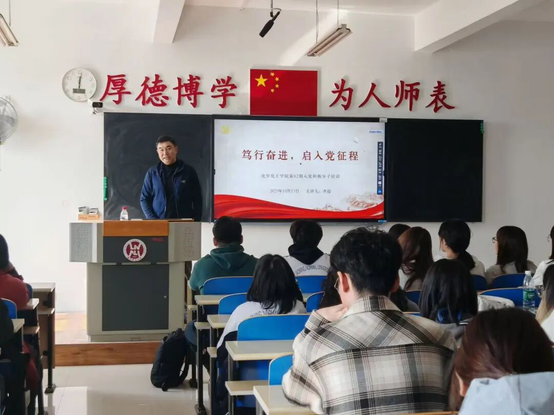 党委副书记齐迎老师主讲,主题为“笃行奋进,启入党征程”