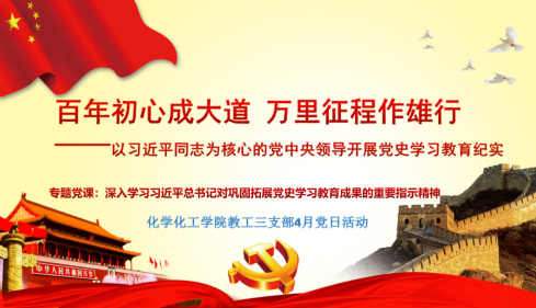 2022年4月,教师三支部开展《百年初心成大道 万里征程作雄行》党日活动。会后,支部党员表示必须不断加深对“两个确立”决定性意义的认识,更加坚定自觉地用习近平新时代中国特色社会主义思想统揽全局,坚定信心、统一思想,积极行动、敢于斗争,真正做到紧跟总书记、奋进新征程。