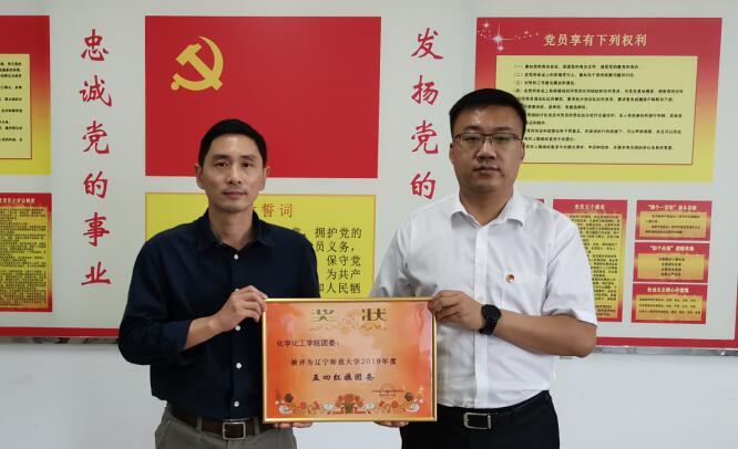 校团委书记冯博亲手将“辽宁师范大学2019年度五四红旗团委”奖状颁发给了学院团委书记苑朋栋。苑朋栋代表学院团学工作队伍,对校团委和学院党委一直以来的关心与指导表达了谢意,并表示将正视当前所取得的阶段性成果,清醒认识自身存在的诸多不足,在今后的工作中增优势,强弱项,补短板,推进学院团学工作再上新台阶。