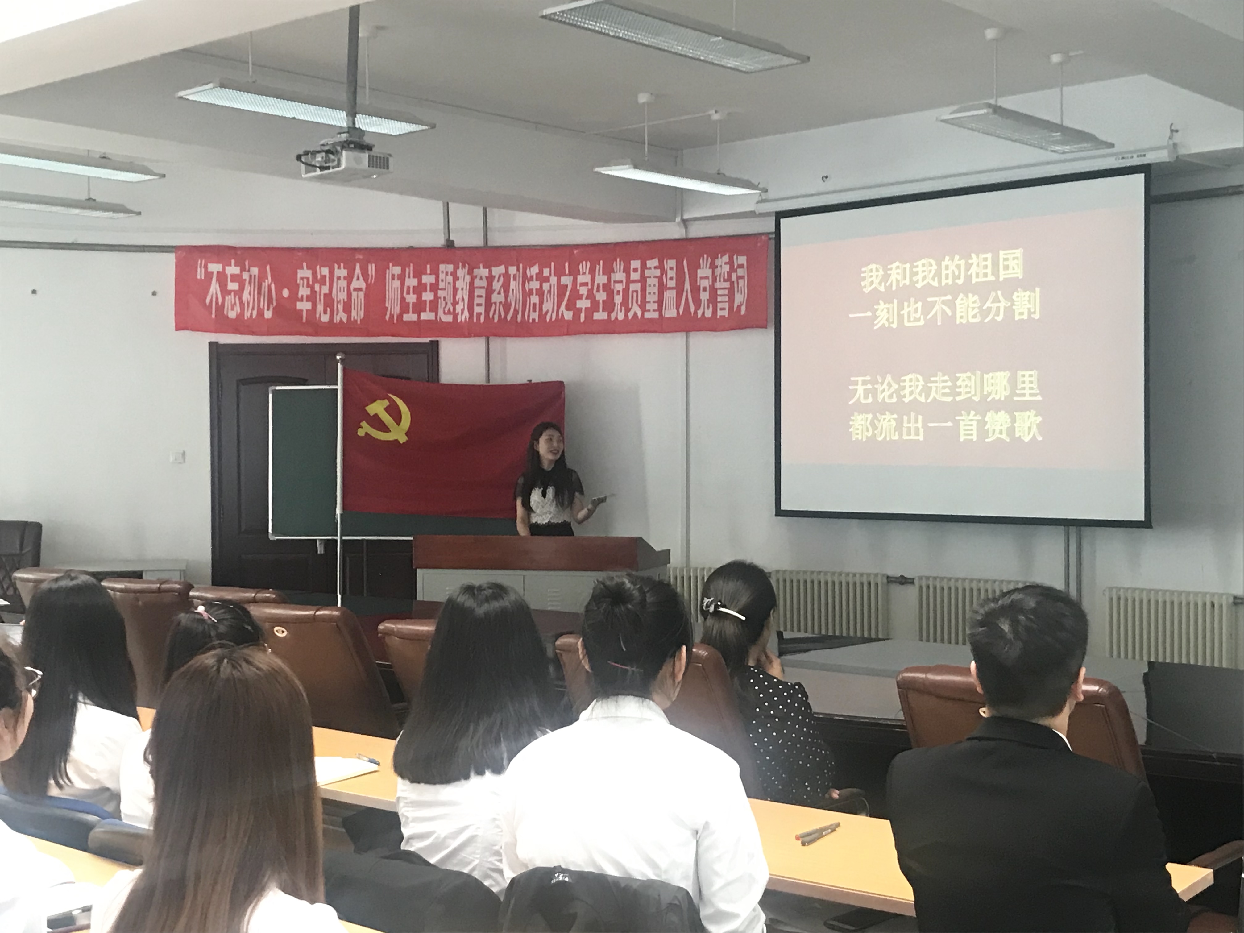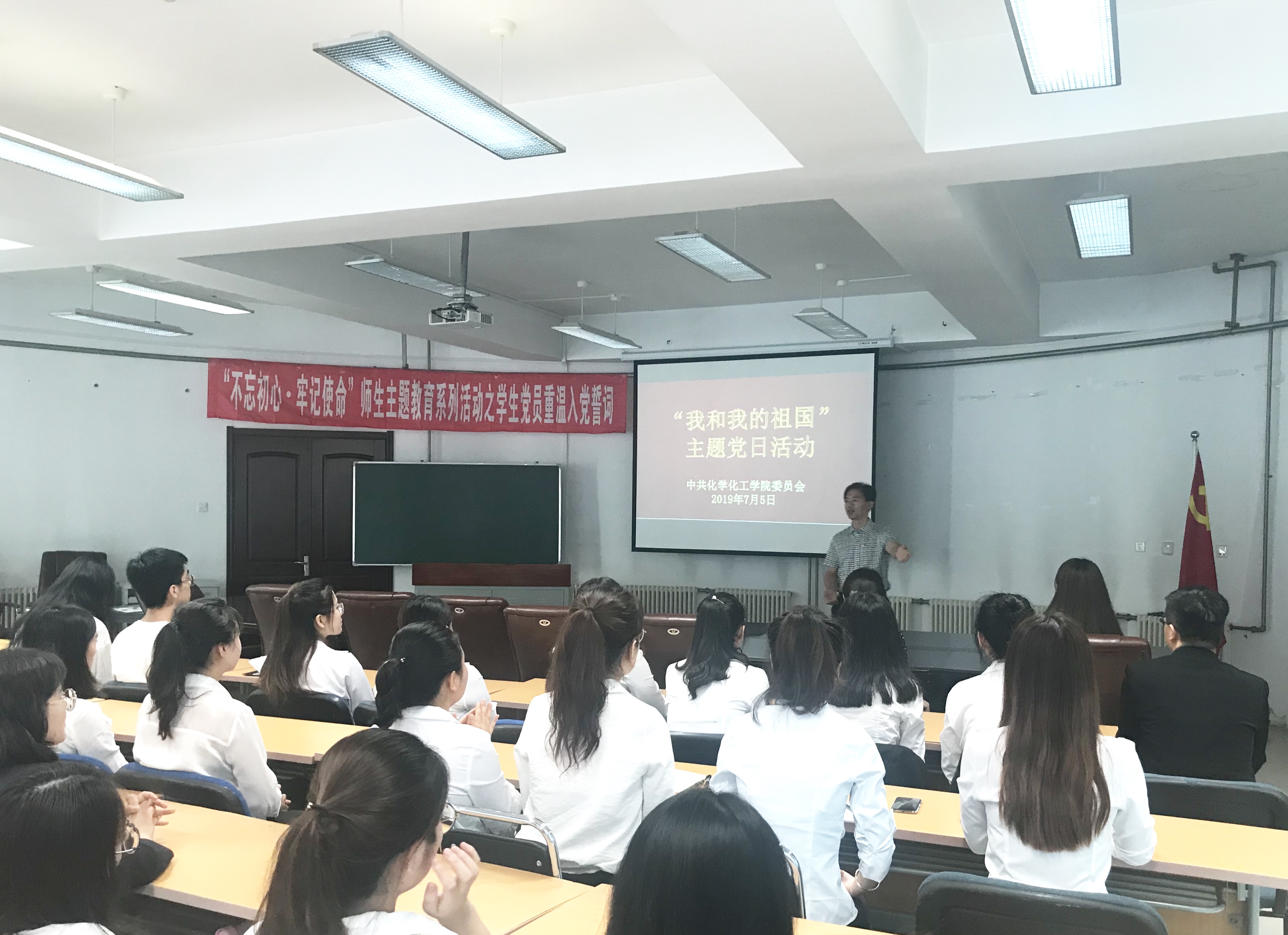 全体学生党员在理化楼C401举行了“不忘初心、牢记使命”师生主题教育系列活动之“我和我的祖国”主题党日活动。