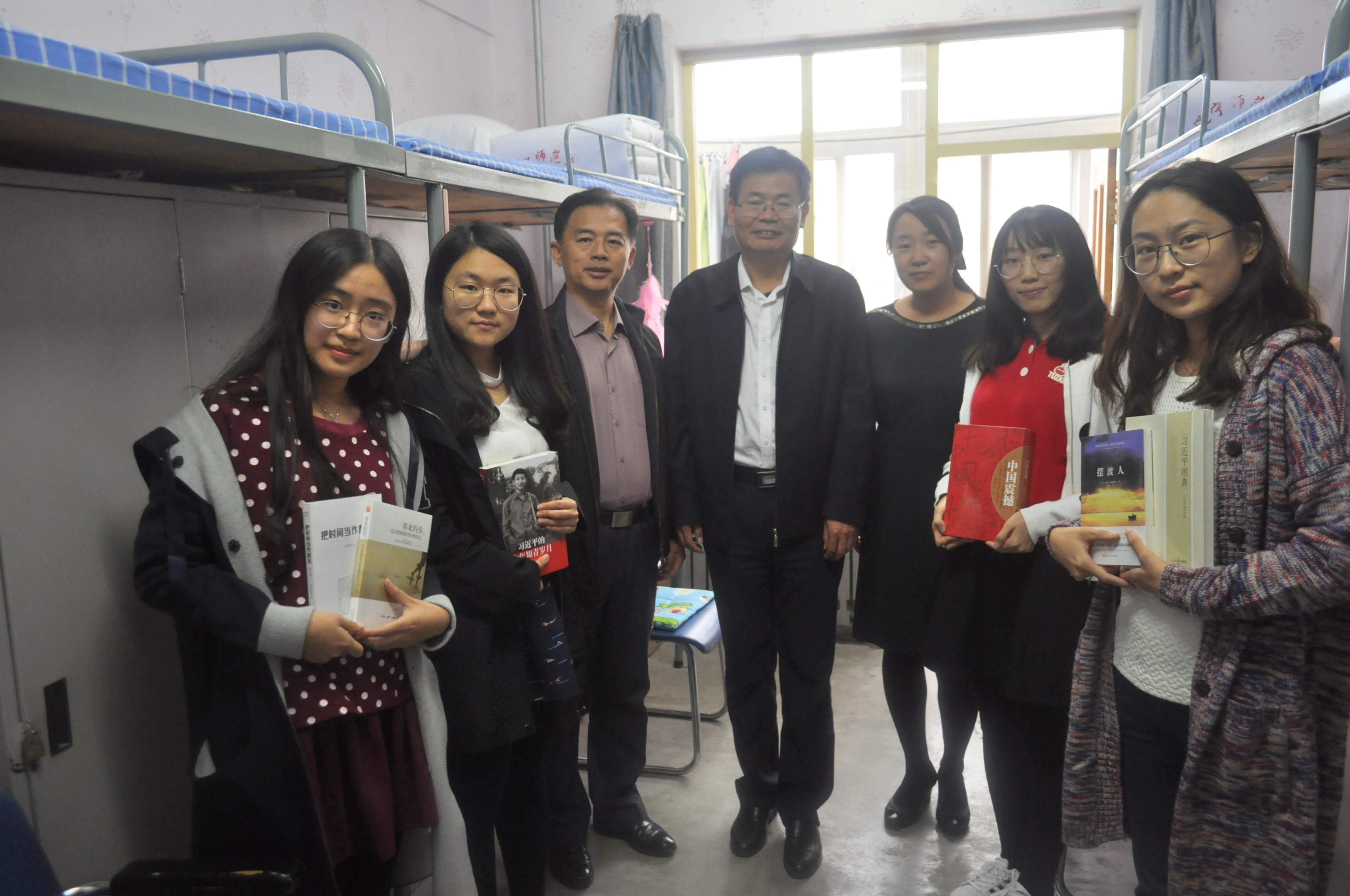 座谈结束后, 岳校长向四名同学赠送了《习近平的七年知青岁月》、《中国震撼三部曲》、《习近平用典》等书籍,鼓励同学们多读书、读好书。同学们纷纷表示,在日后的专业学习与科学研究中要打牢基础,全面发展,为学校、学院及学科领域的建设与发展作出自己的贡献。