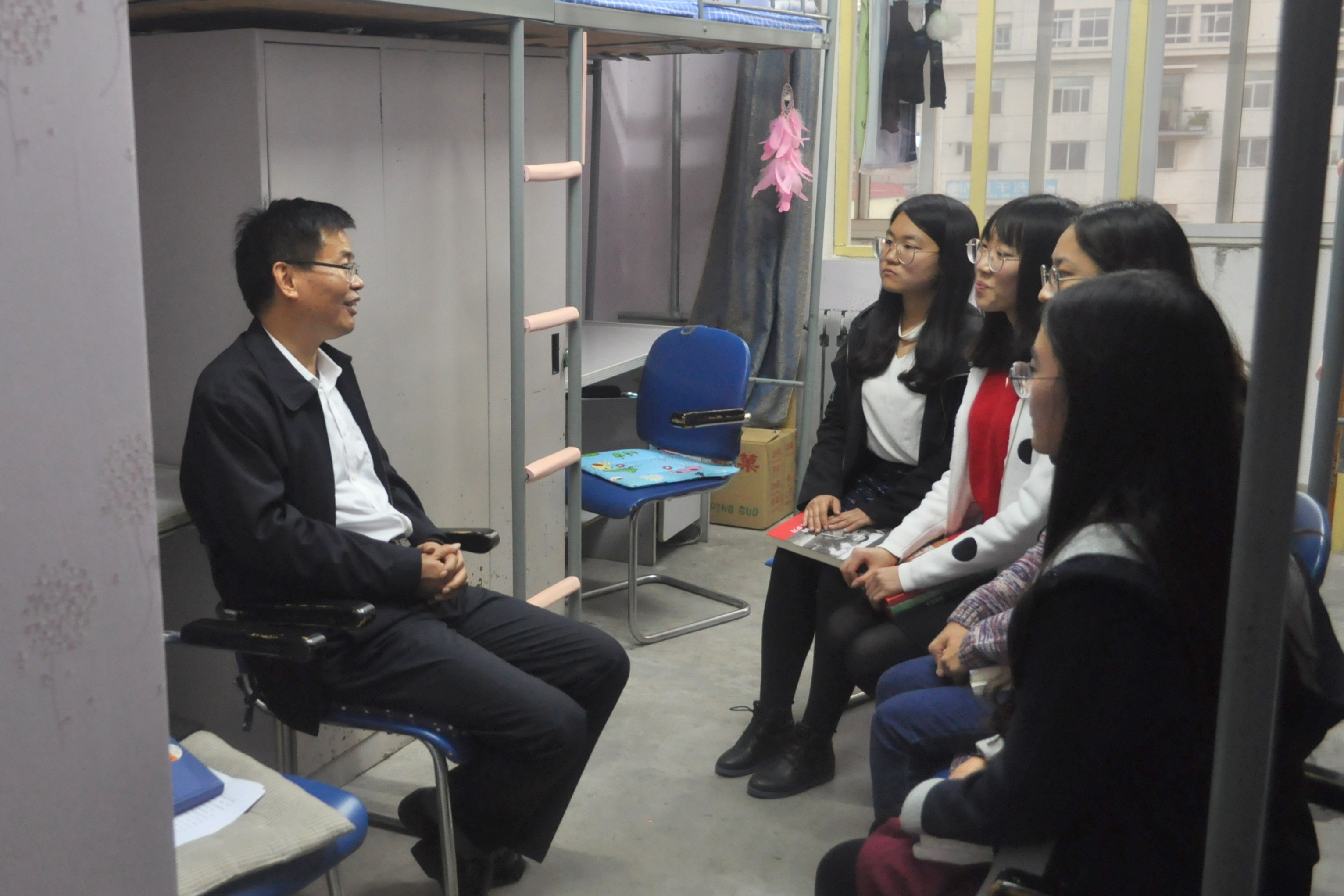 10月18日下午,岳崇兴副校长走进后大学生公寓城四公寓416学生寝室,与红杏视频