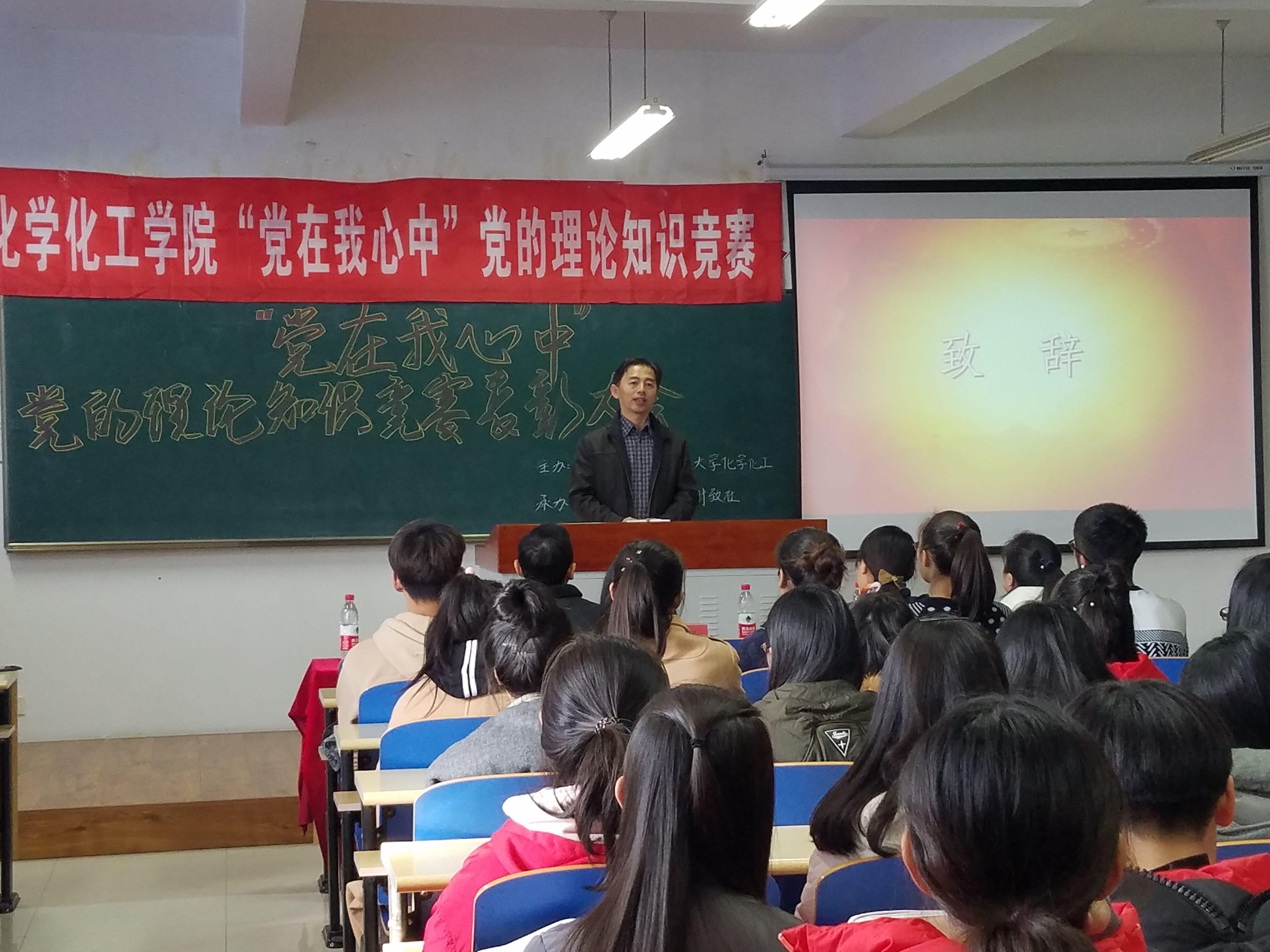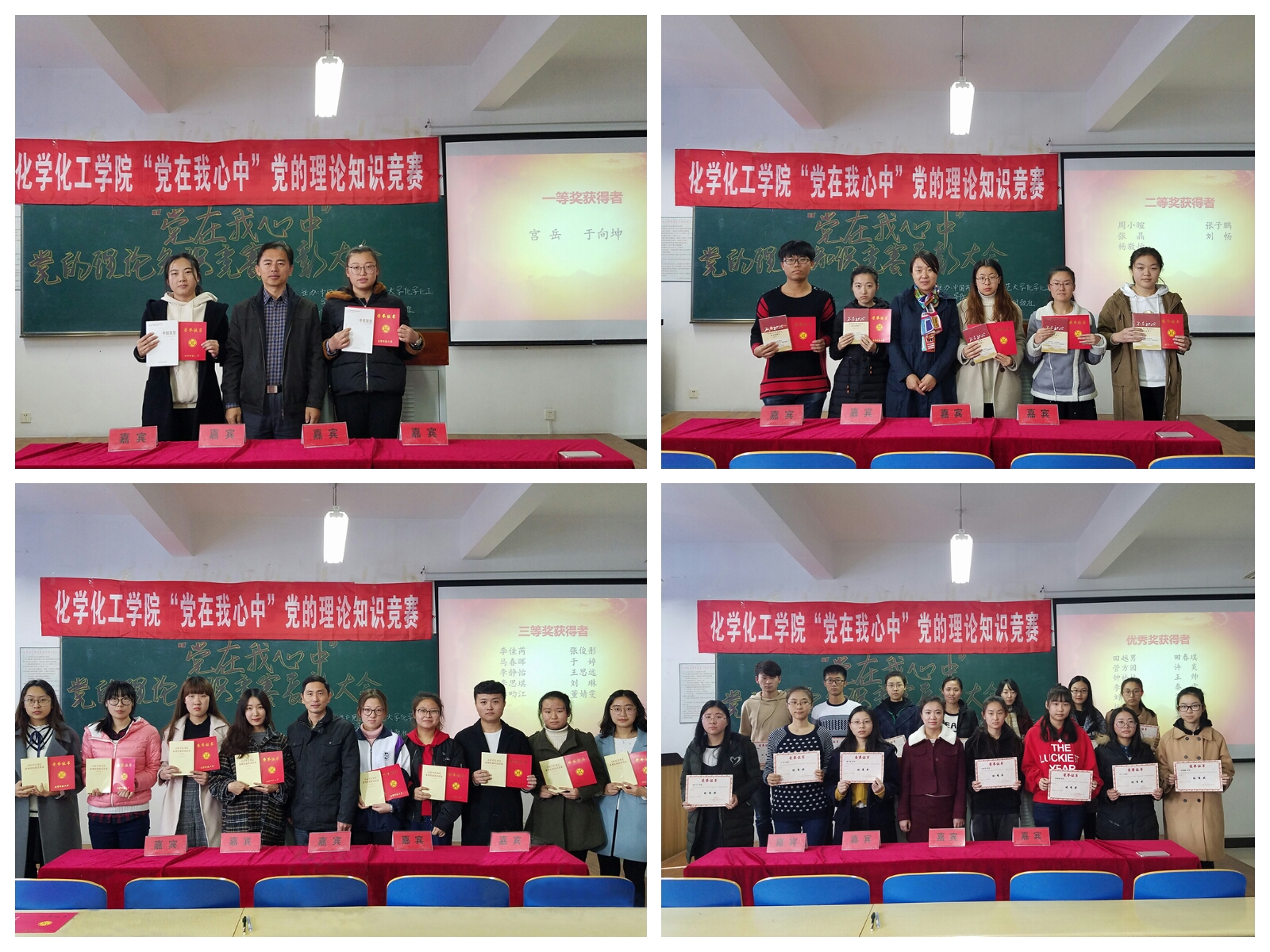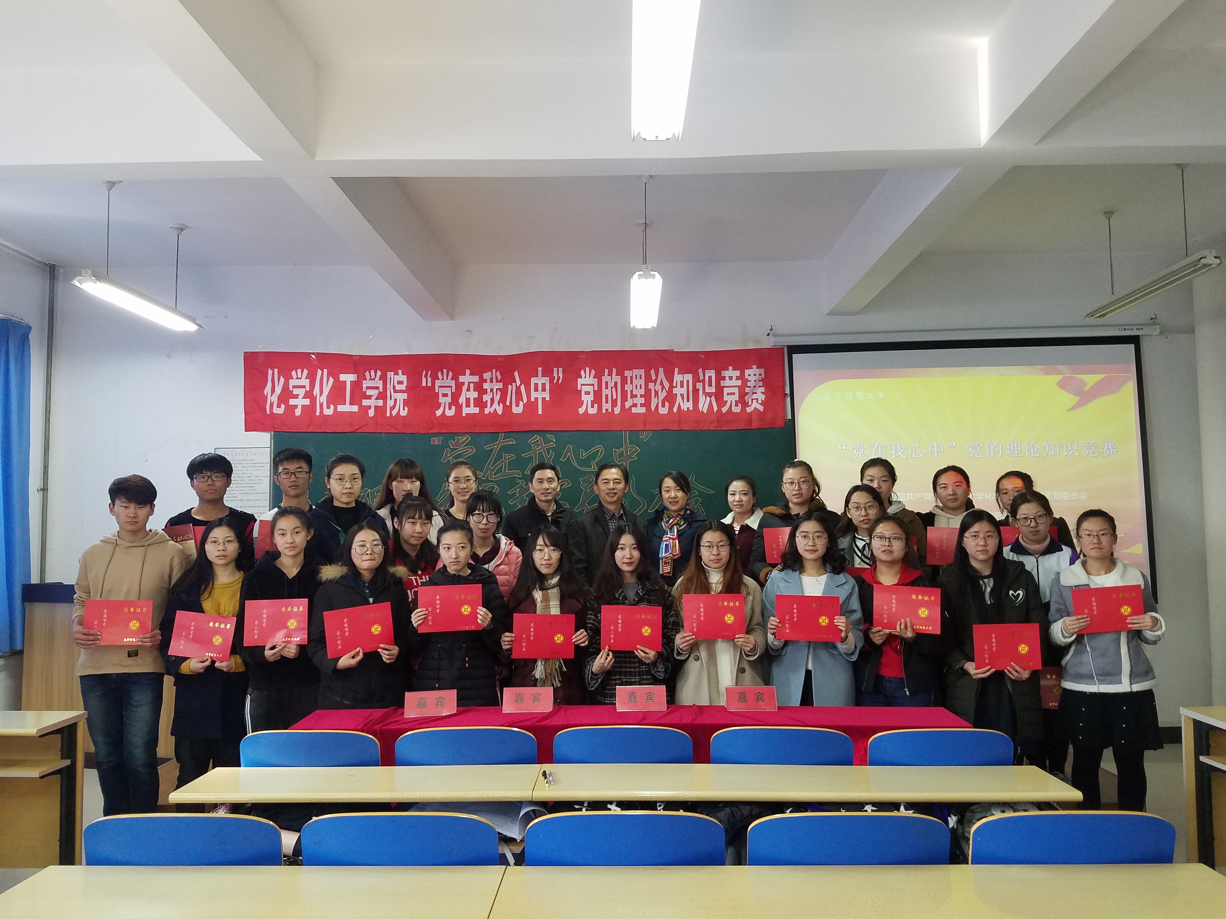 在理化楼C区416室召开了“党在我心中”党的理论知识竞赛表彰大会。学院党总支书记刘智广、党总支副书记李金英、团委书记苑朋栋、辅导员肖虹参加了本次大会。