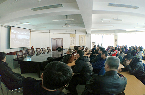 随后,全体教工观看了金一南教授的演讲视频——《从百年沧桑到大国崛起》。在演讲中,金一南教授细说中国近百年的苦难与辉煌,探索中国如何摆脱衰败,从东亚病夫走向民族复兴。金教授指出,近代中国最大的问题在于人民的国家意识淡薄,极度不团结,一盘散沙。听者动容,令人深省。全体教职工深深地被视频中振奋人心的演讲所感染,每个人的内心深处的爱国情愫被这慷慨激昂的演讲所触动。