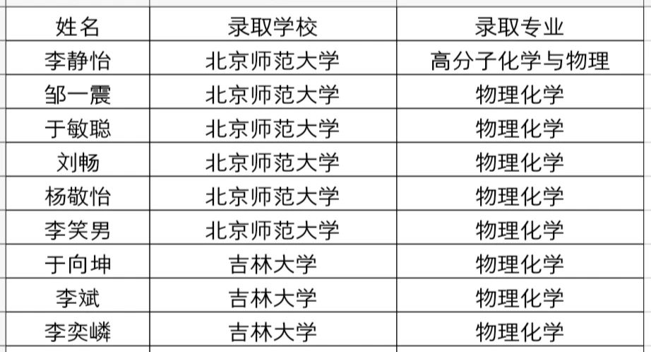 共有86名同学顺利通过2020年全国研究生入学考试,考取院校涉及国内外20所知名高校与科研院所。其中保研同学共有9人,保送至北京师范大学6人,吉林大学3人。考研同学共77人,其中4名考取国外大学——英国华威大学1人,英国曼彻斯特大学1人,英国巴斯大学1人,英国约克大学1人。其他73名考研同学被分别录取至国内各知名大学,其中,中国科学院大学1人,华东师范大学3人,大连理工大学3人,东北大学3人,陕西师范大学3人,东北师范大学28人,辽宁师范大学22人,杭州师范大学4人,北京化工大学1人,北京工业大学1人,东北林业大学1人,南京林业大学1人,沈阳药科大学1人,西北师范大学1人。