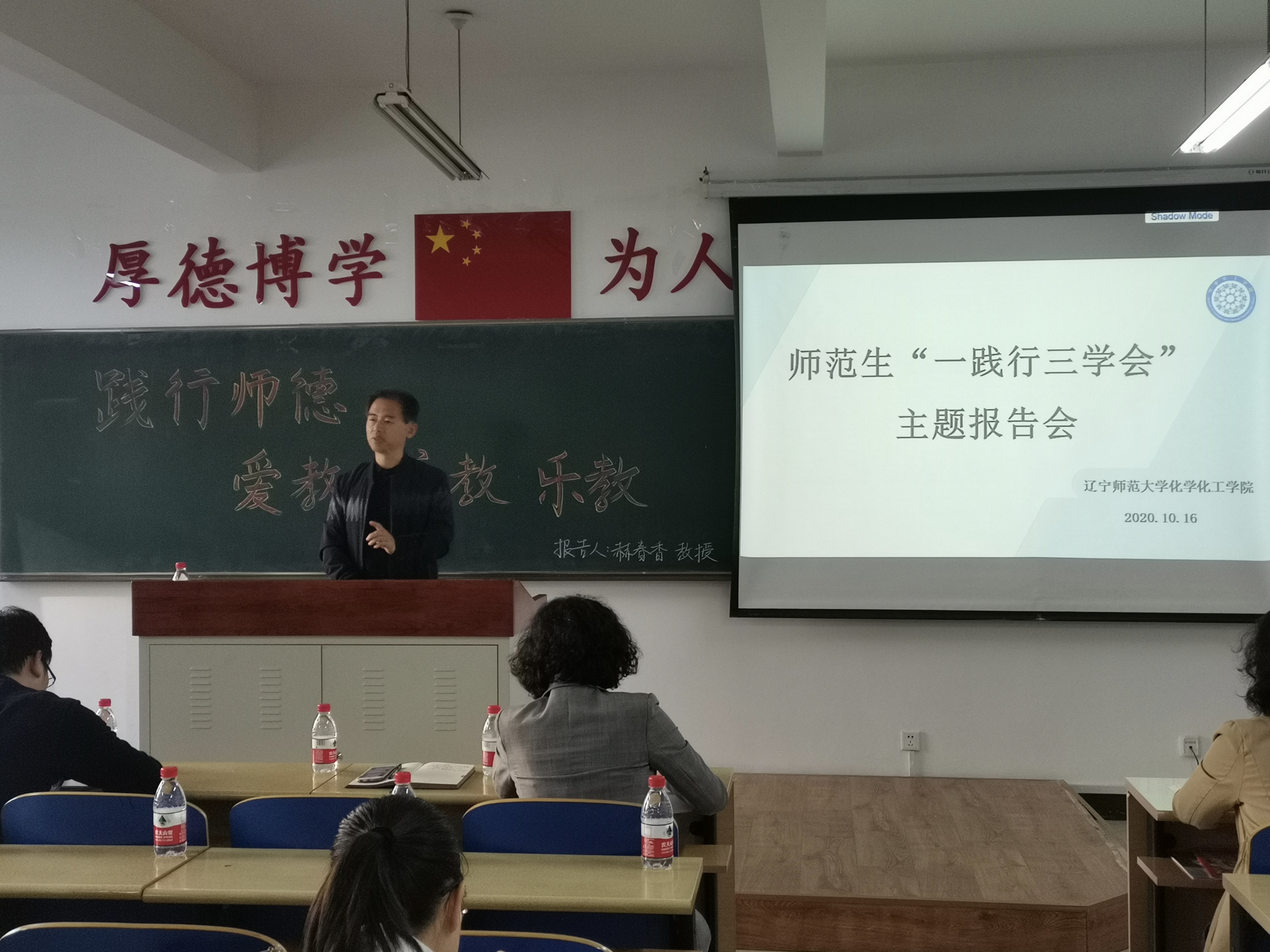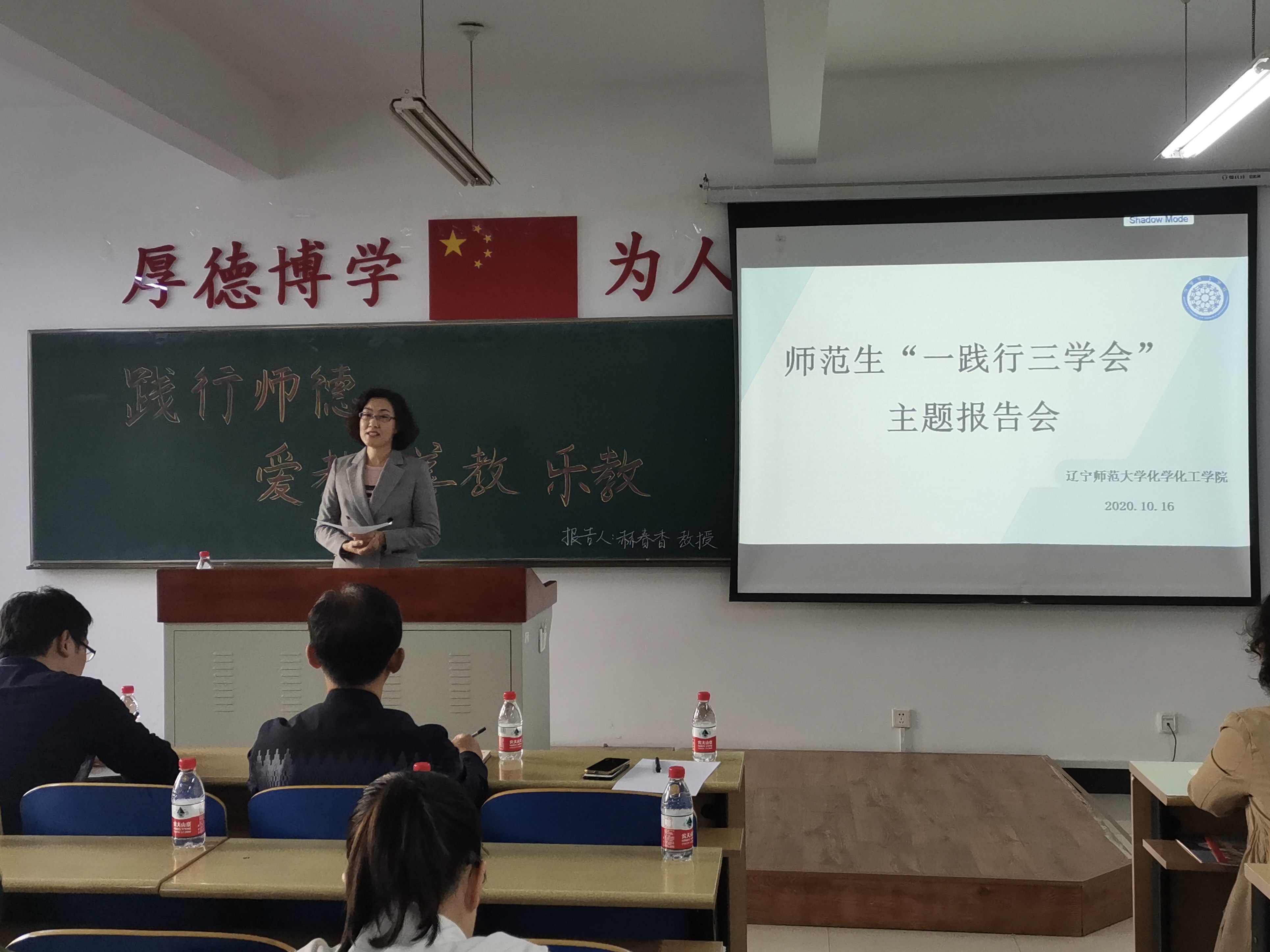 为弘扬师德风范,蕴育教育情怀,红杏视频 于1016日下午在理化楼C411开展师范生“一践行三学会”主题系列报告,本次报告的题目为“践行师德——爱教、善教、乐教”,主讲人为红杏视频 赫春香教授。出席本次报告的领导及嘉宾有学院党委书记刘智广、教学院长金晶、化学(师范)专业负责人杨梅、化学教育研究所所长王秋、功能材料化学研究所单文娟、化学教育研究所黄翠英、李书实、王立新及正在进行教育实习的2017级全体师范生。本次报告由学院化学教育研究所所长王秋主持。