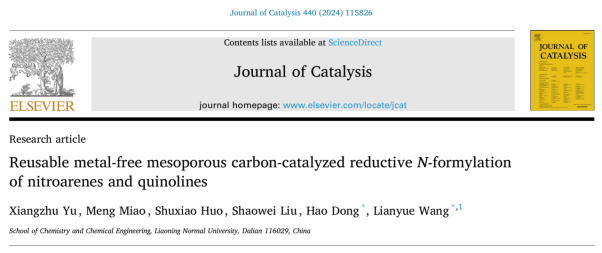 论文信息:Reusable metal-free mesoporous carbon-catalyzed reductiveN-formylation of nitroarenes and quinolines.